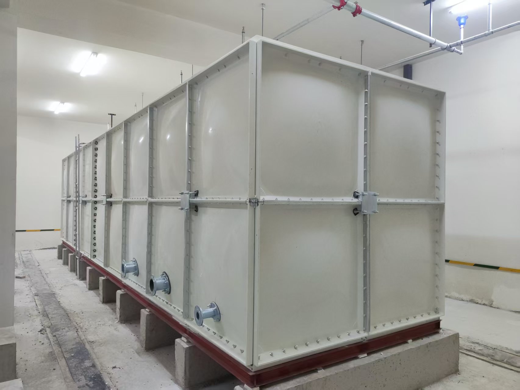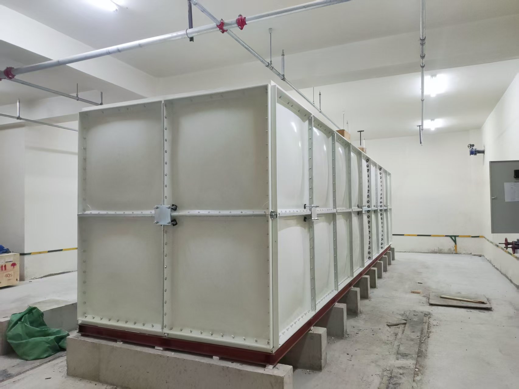 石家庄市天苑小区,地下室污水处理项目,四道隔板玻璃钢水箱安装完毕